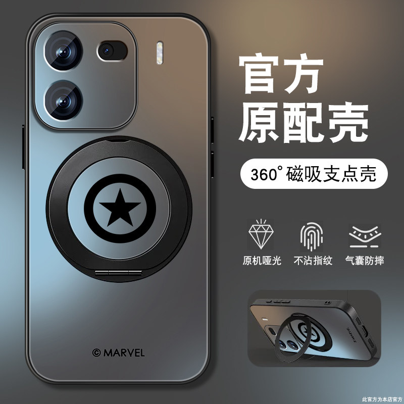 适用iqoo12手机壳iqoo13男新款iqoo11pro肤感10旋转磁吸支架iqoo9/8/7/3外壳5pro磨砂全包防摔保护套美国队长
