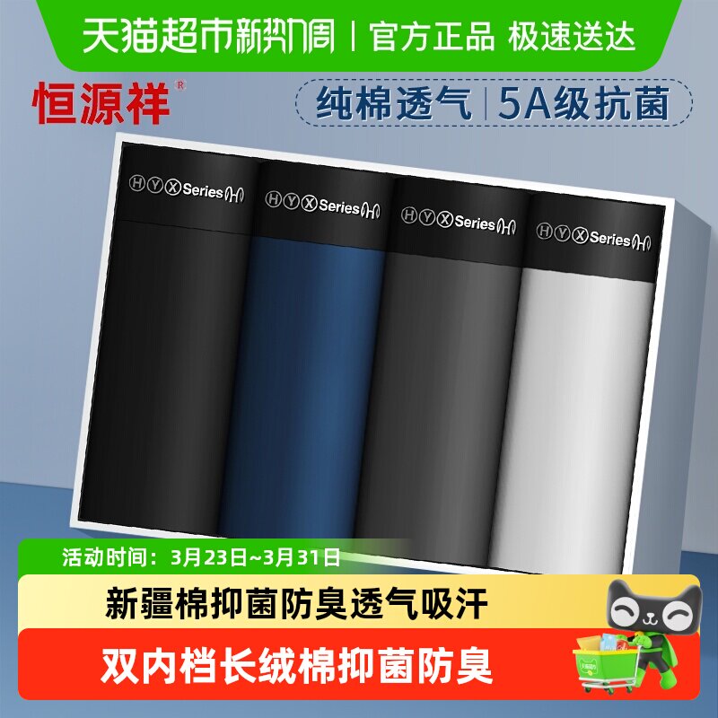 恒源祥男士内裤男纯棉抗菌平角裤青年男生四角短裤头透气大码裤衩