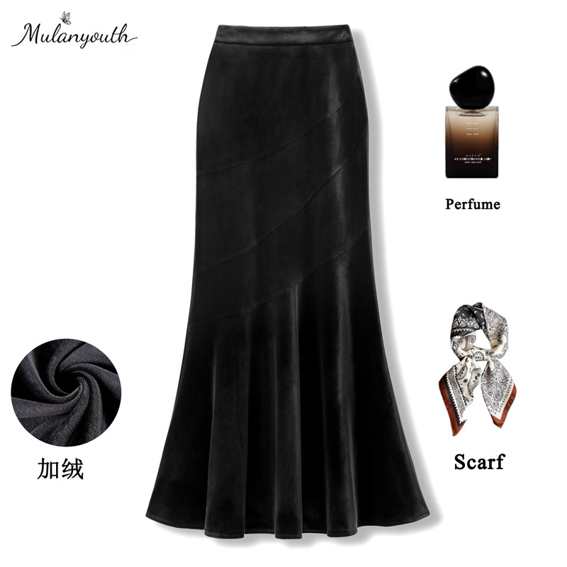 加厚裙子女秋冬半身裙2025新款加绒高腰半裙女丝绒长裙鱼尾包臀裙