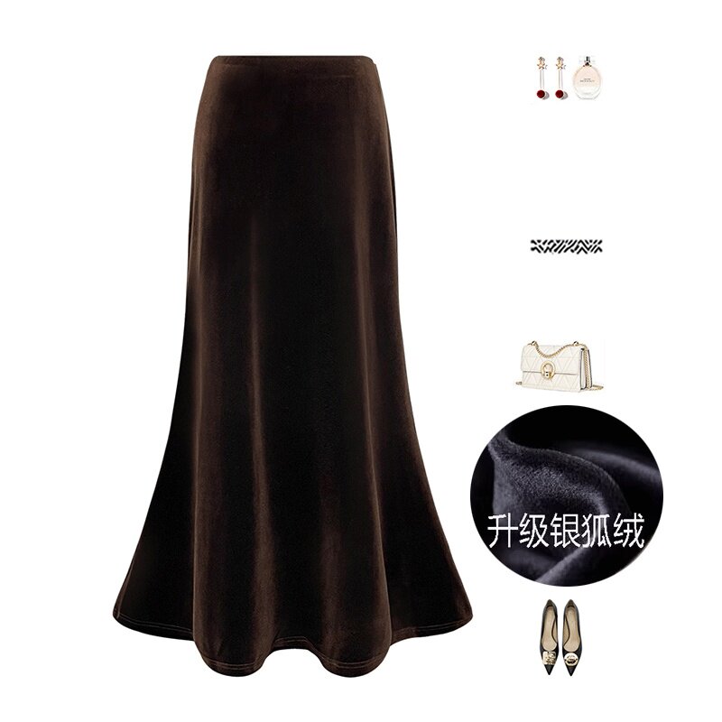 咖色半身裙女丝绒半裙长裙加绒加厚高腰金丝绒鱼尾裙秋冬气质裙子