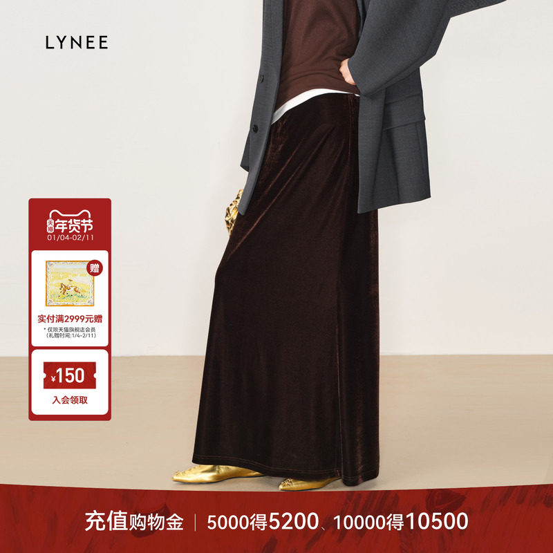 LYNEE 高腰丝绒简约鱼尾半身裙女秋冬新款优雅显瘦气质半裙