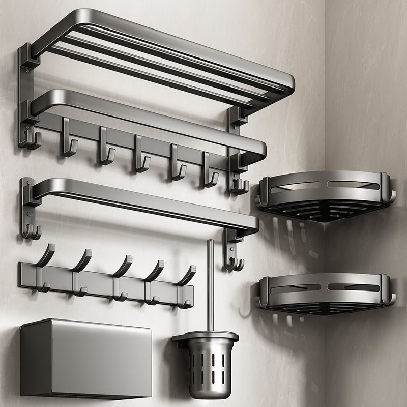 免打孔毛巾架浴室置物架卫生间太空铝毛巾杆厕所壁挂卫浴浴巾折叠