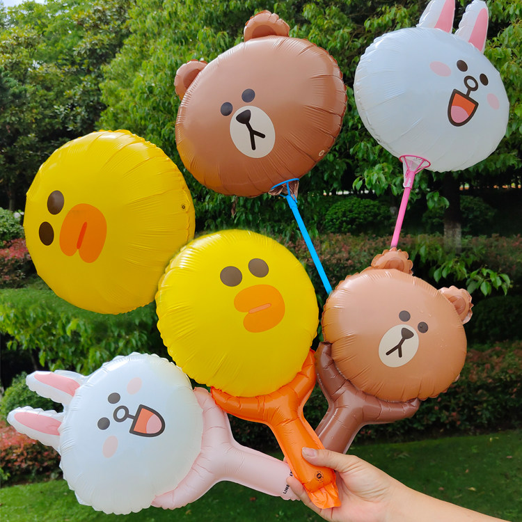 line布朗熊可妮兔主题卡通手持铝膜气球儿童成人生日派对场景装饰