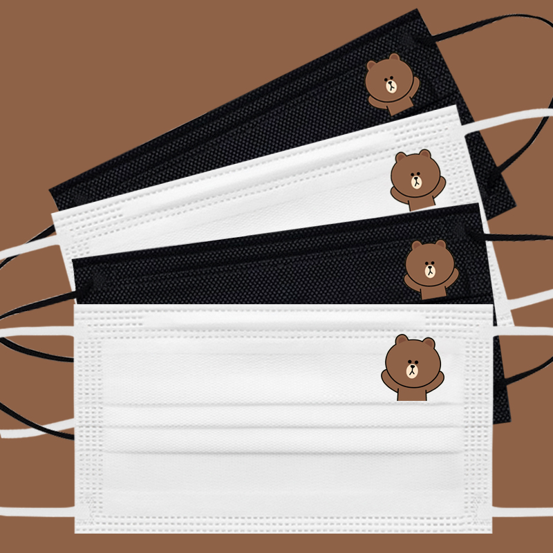布朗熊可妮兔卡通一次性口罩大人可爱创意个性印花logo定制图案