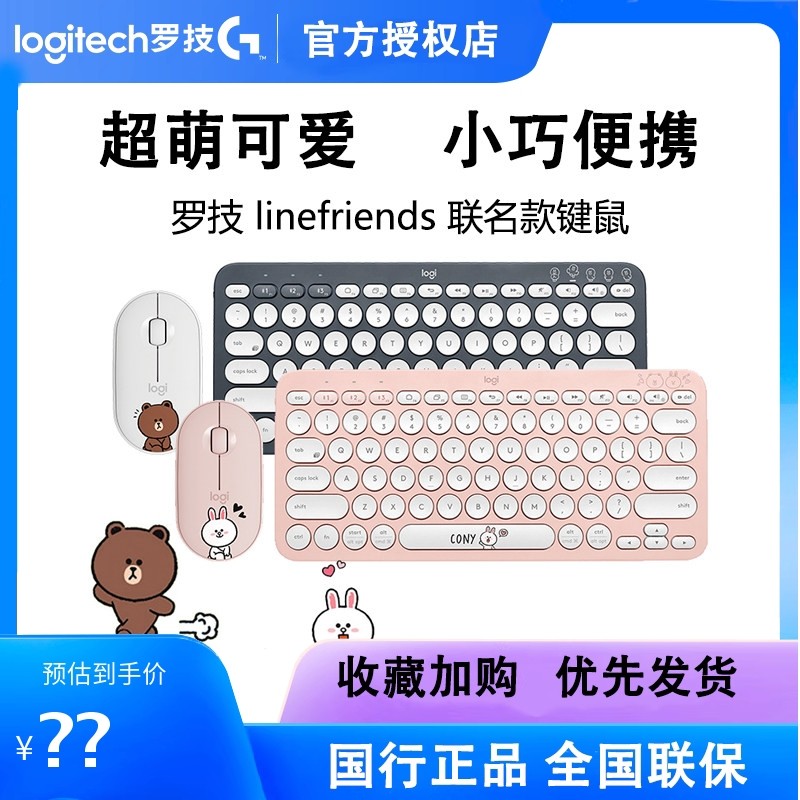 罗技LINE联名布朗熊可妮兔无线蓝牙静音K380键盘鼠标多平台logi