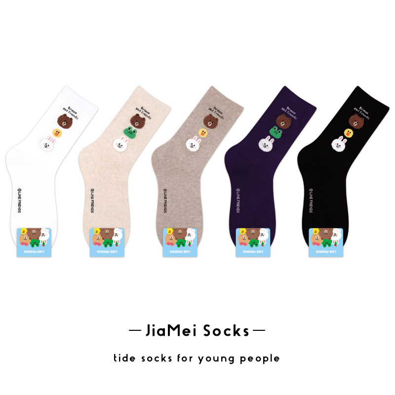 可妮兔布朗熊袜子女韩国LINE FRIENDS联名可爱卡通莎莉蛙里奥长袜