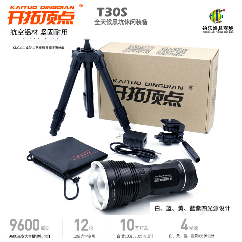 开拓顶点T30S钓鱼灯夜钓灯四光源可变焦黑坑休闲野钓钓灯蓝光灯