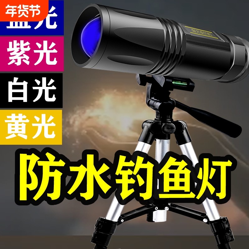 钓鱼灯夜钓灯专用野钓大功率超亮强光夜光诱鱼台钓灯蓝光灯手电筒