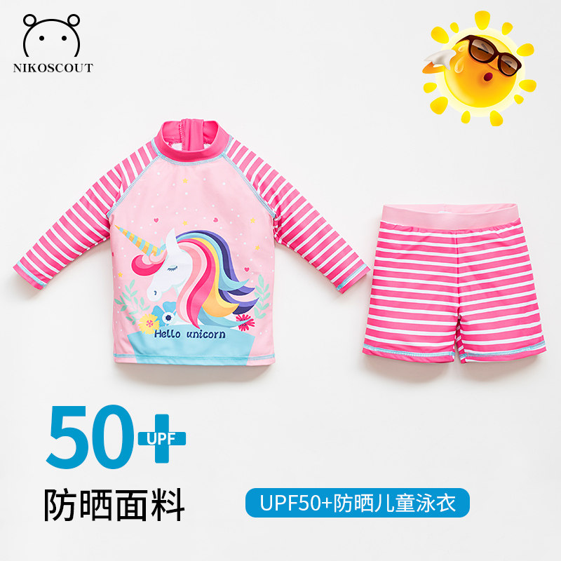 美乐蒂儿童泳衣女童小孩宝宝长袖长裤分体游泳衣裤泡温泉海边防晒