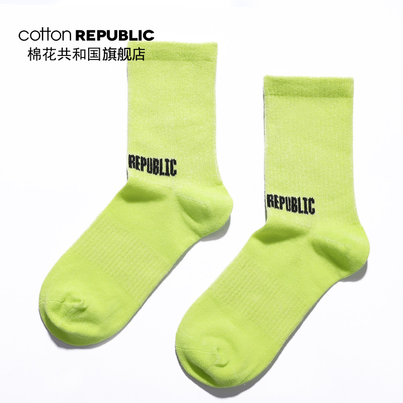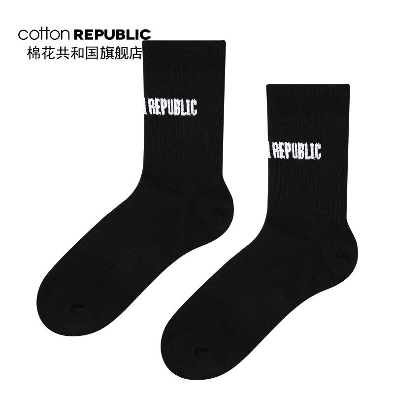 Cotton Republic/棉花共和国女士中筒袜情侣款LOGO提花休闲棉短袜
