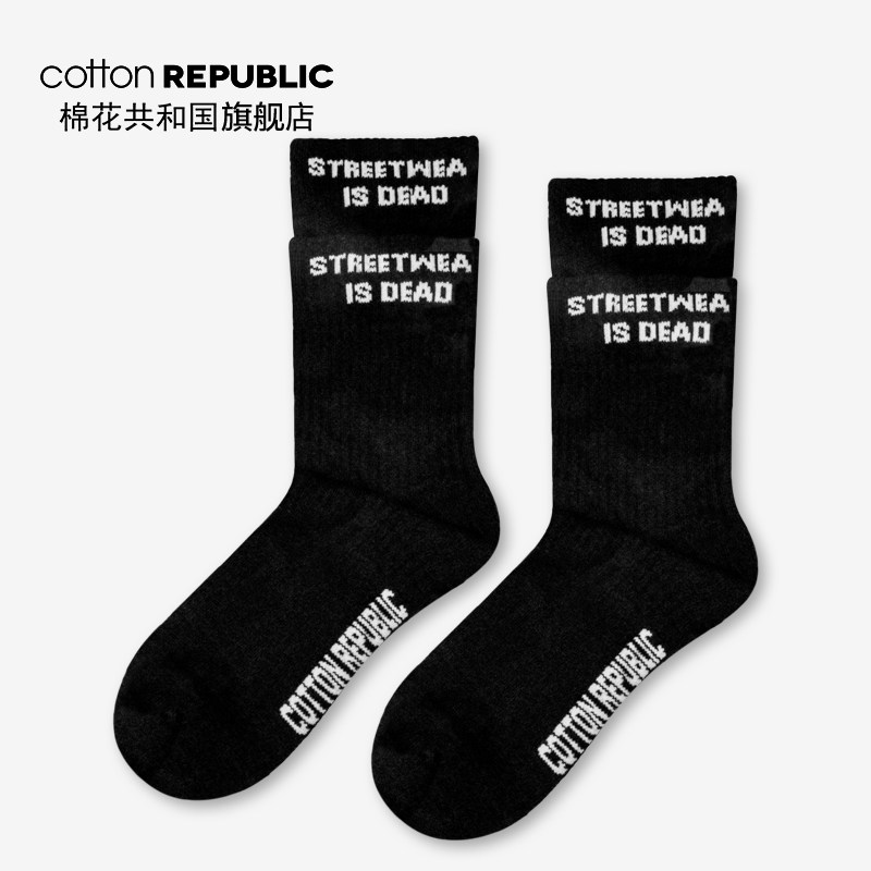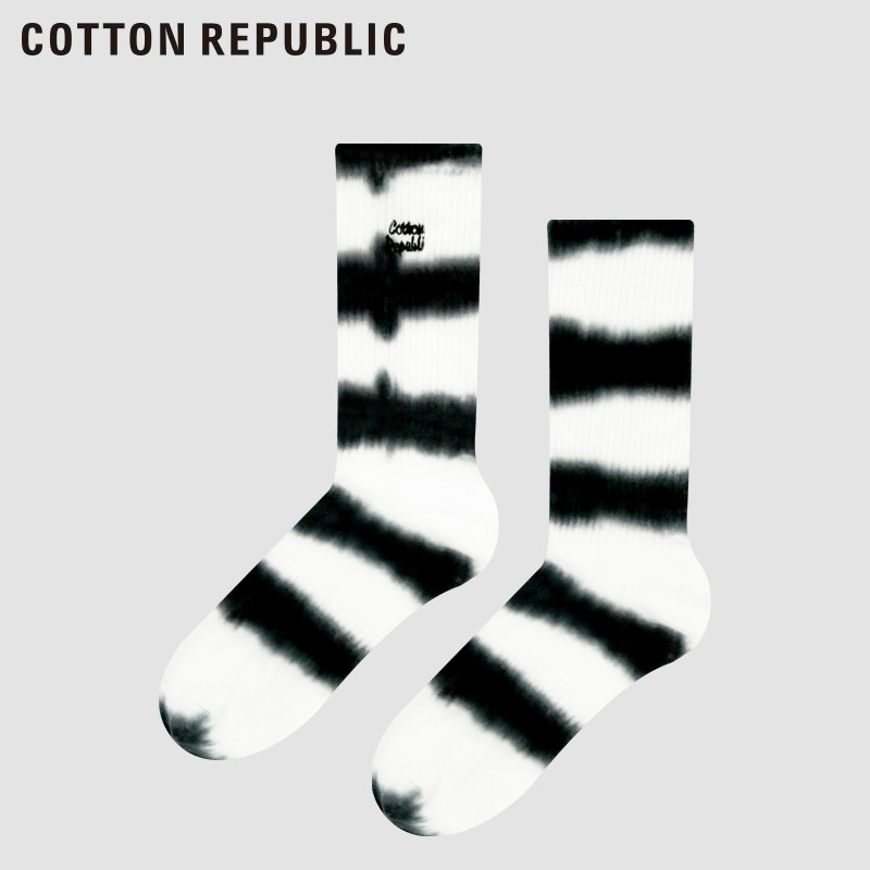 Cotton Republic/棉花共和国轧染撞色男女情侣棉提花中筒袜休闲袜