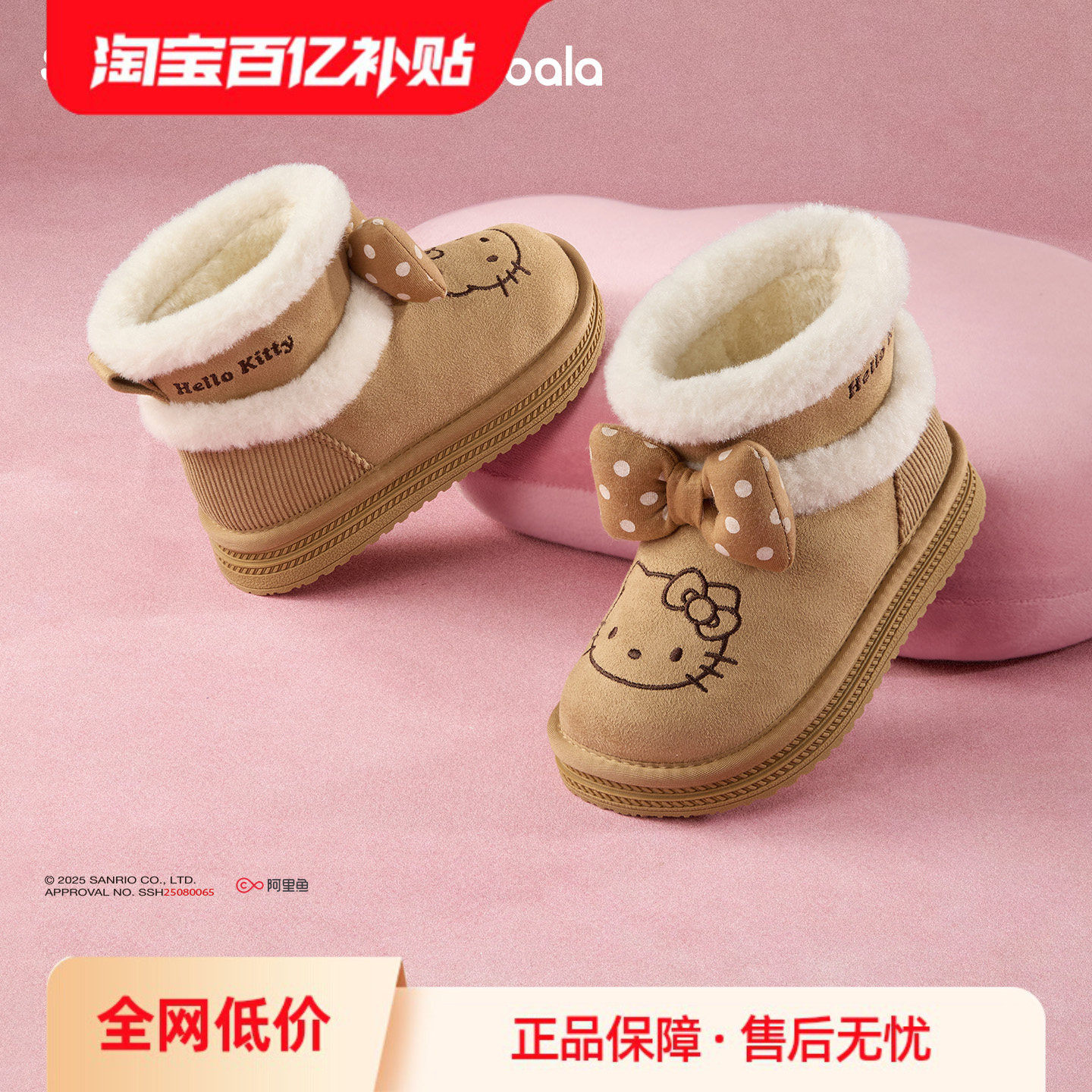 三丽鸥巴拉巴拉童鞋儿童雪地靴女童短靴加厚加绒2025冬季靴子防滑