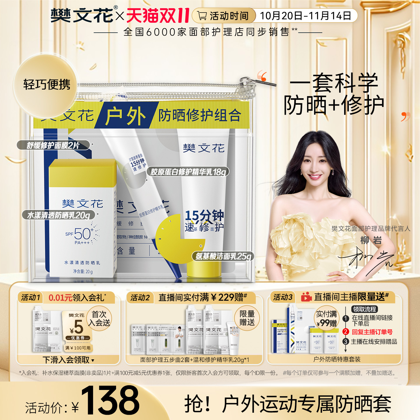 樊文花户外防晒修护组合隔离紫外线敏感肌晒后修护面膜清爽不闷肤