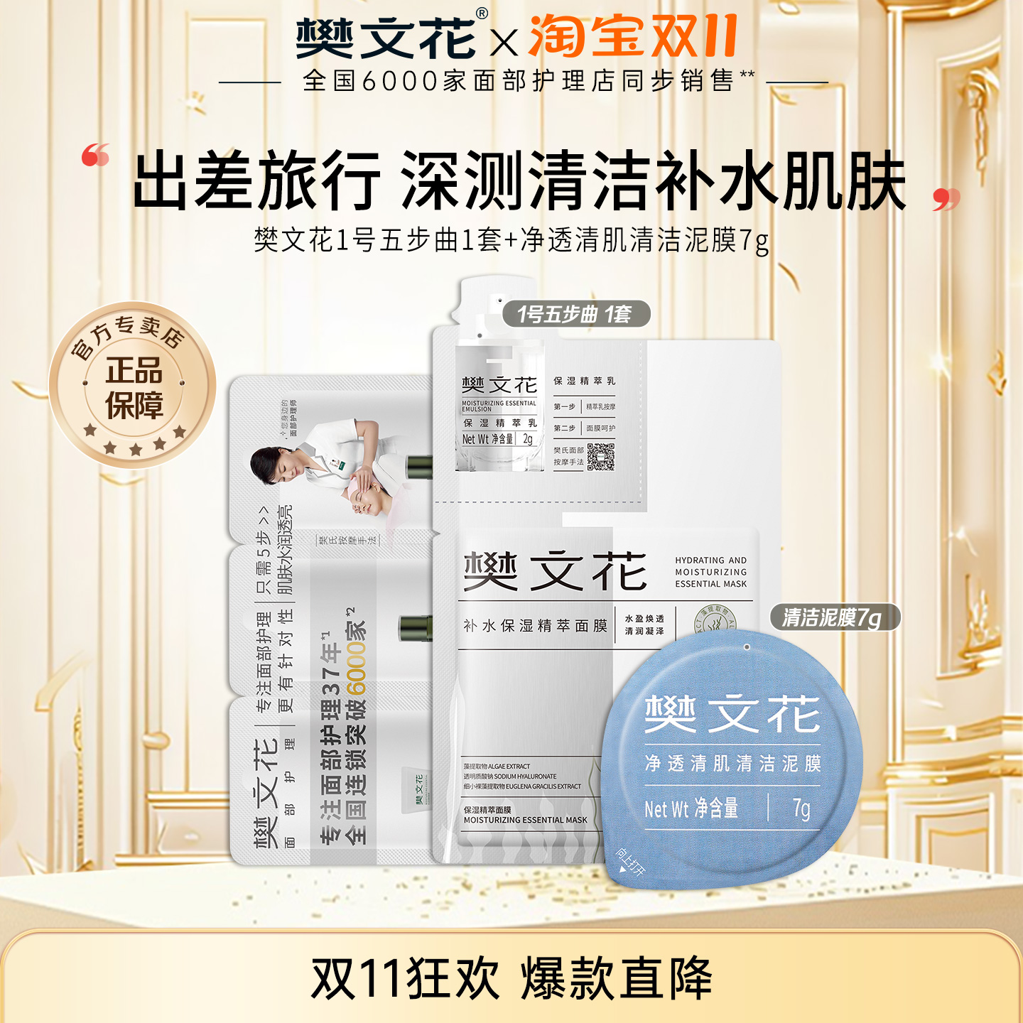 樊文花补水保湿五部曲水乳护肤套次抛小罐泥膜深层清洁涂抹式面膜