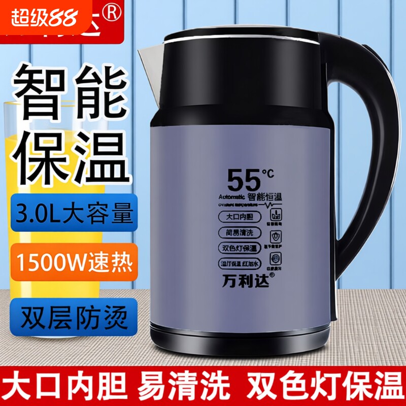 万利达电热水壶2026新款家用不锈钢恒温开水壶保温一体宿舍烧水壶