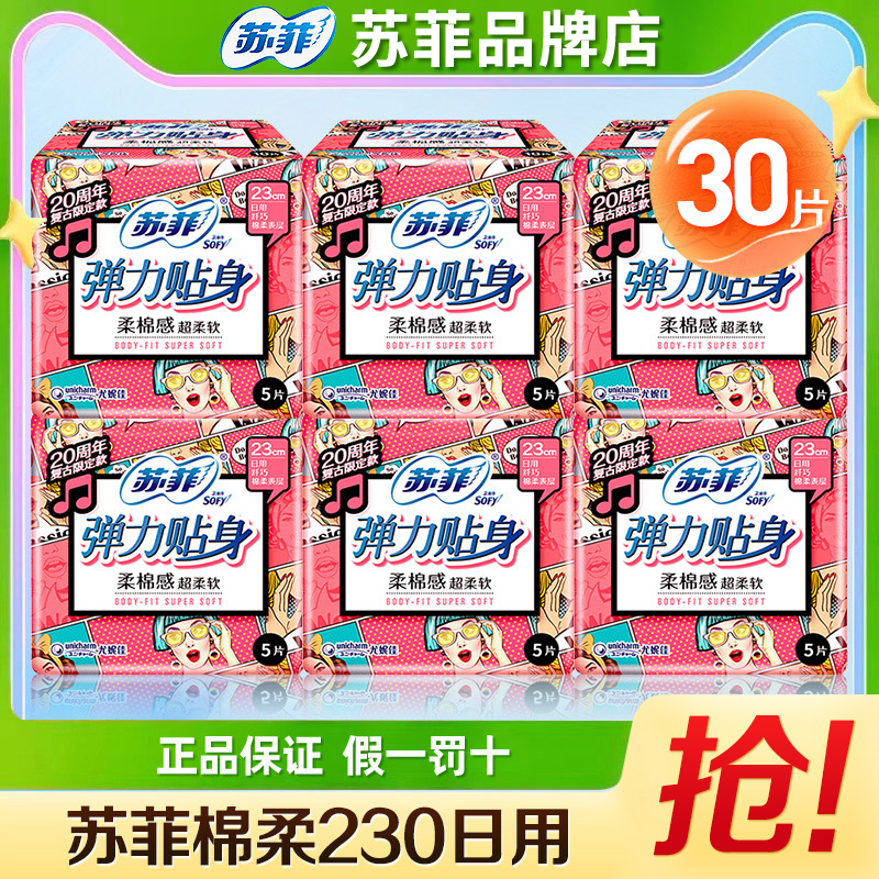 苏菲卫生巾日用230棉柔组合装弹力贴身整箱姨妈巾旗舰店官网正品