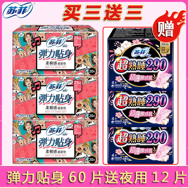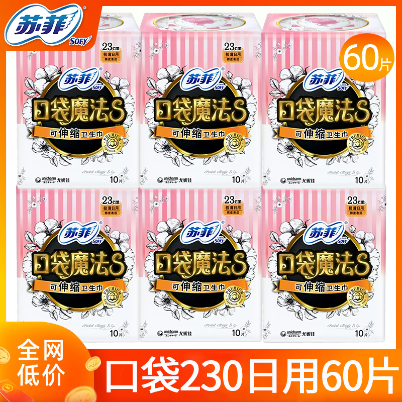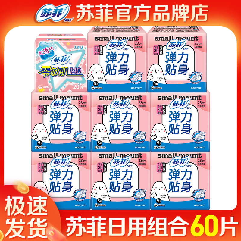 苏菲卫生巾日用230mm弹力贴身60片组合装姨妈巾整箱热卖官网正品