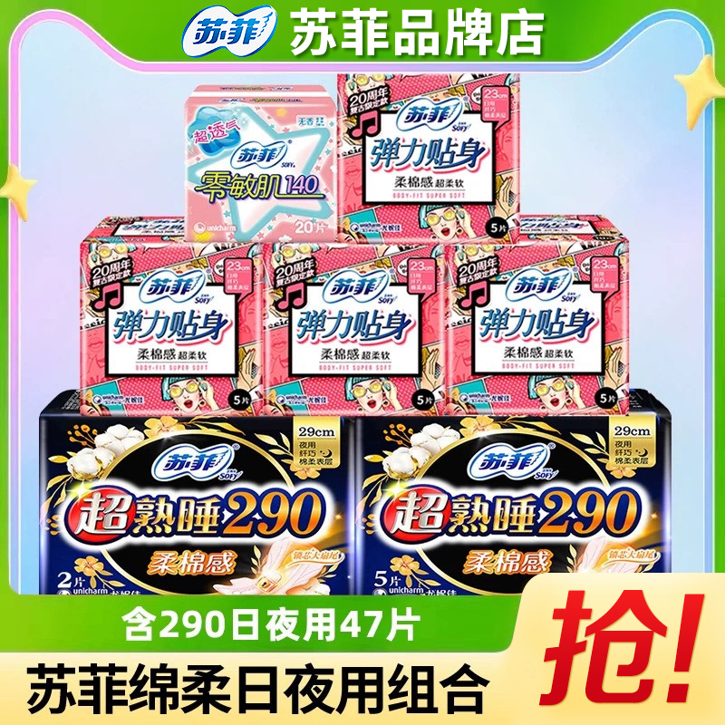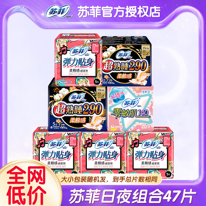 苏菲卫生巾日用230夜用290组合姨妈巾日夜用47片整箱官网品牌正品