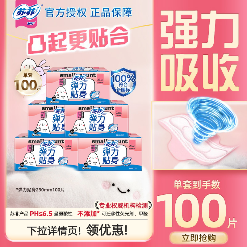 苏菲卫生巾日用组合装230mm100片弹力贴身柔棉感姨妈巾正品官网
