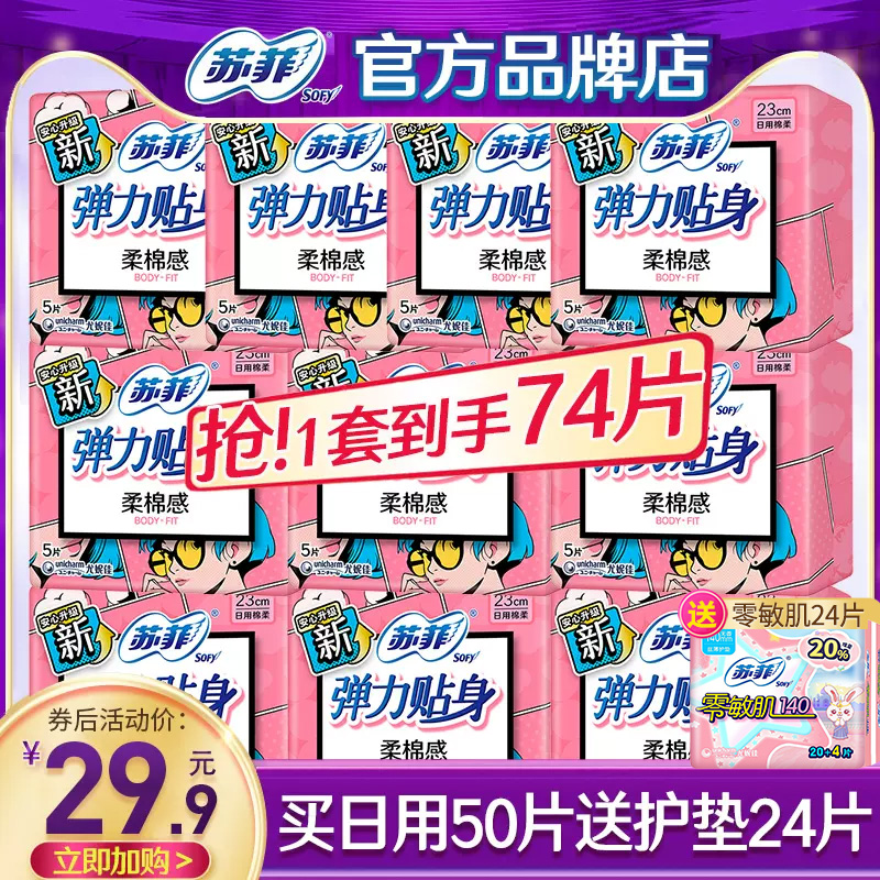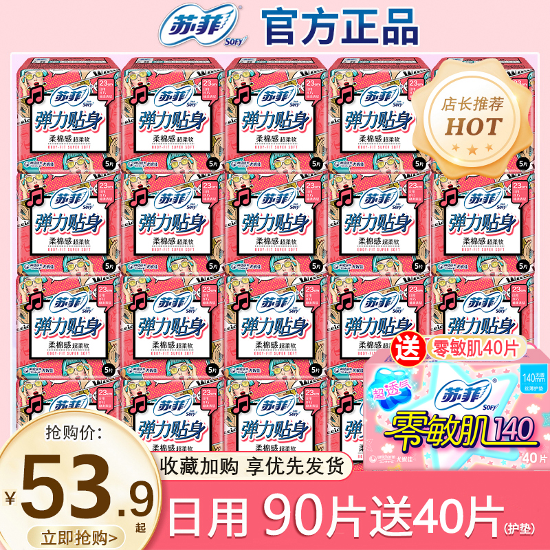 苏菲卫生巾日用棉柔姨妈巾弹力贴身整箱批发组合装官方旗舰店正品