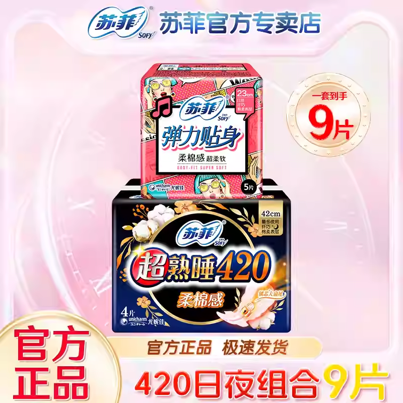 苏菲卫生巾日用夜用组合装日用230夜用420超熟睡官方品牌正品9片