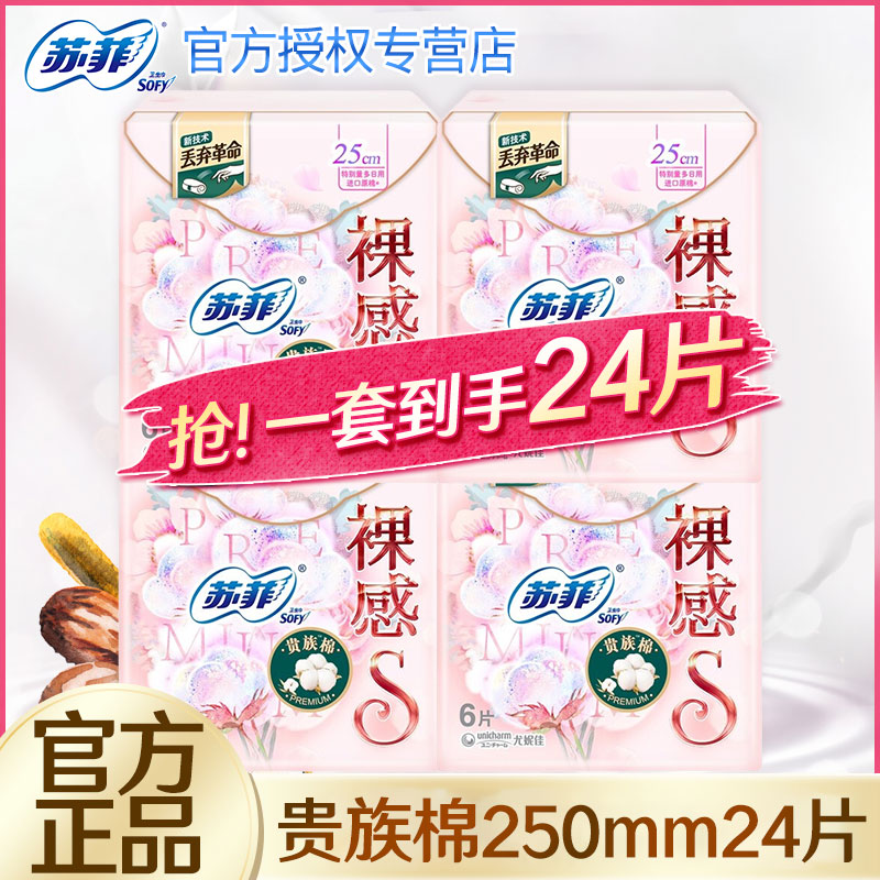 苏菲卫生巾裸感S贵族棉日用250mm整箱组合装纯棉姨妈巾女官方正品
