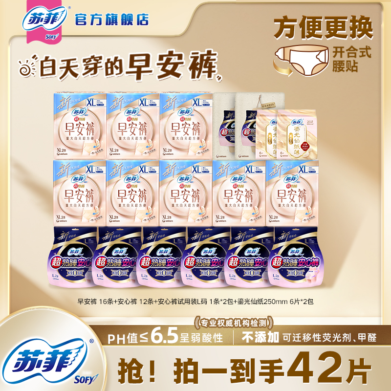 【囤货装】苏菲卫生巾日用早安日安心裤超熟睡鎏光仙纸薄日夜组合