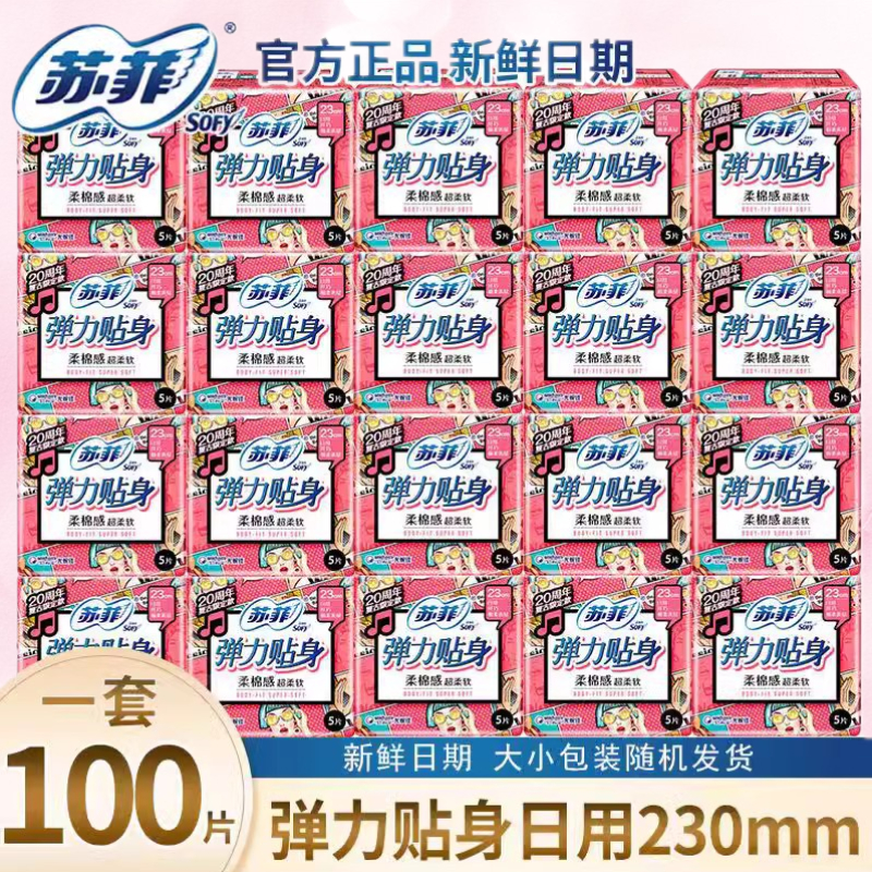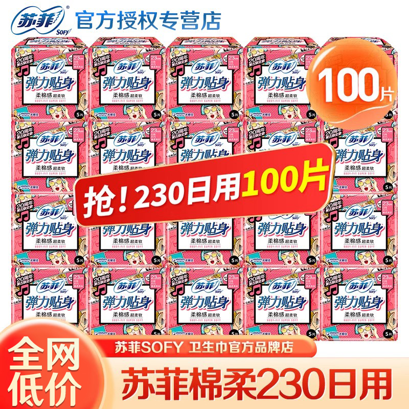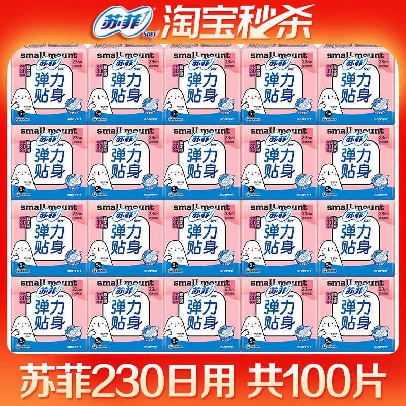 苏菲卫生巾日用230mm弹力贴身棉柔亲肤姨妈巾组合装100片超值正品