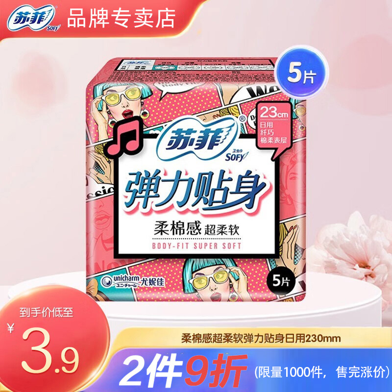 【顺手买一包】苏菲卫生巾日用弹力贴身230mm5片棉柔感官方正品
