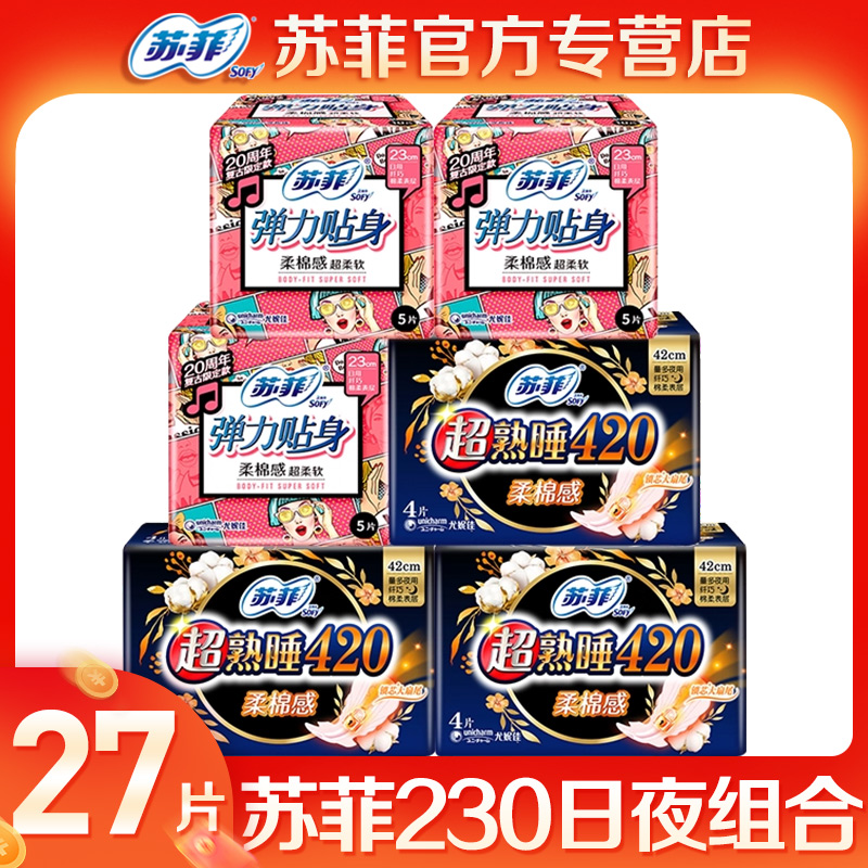 苏菲卫生巾日用夜用组合装日用230夜用420超熟睡官方品牌正品