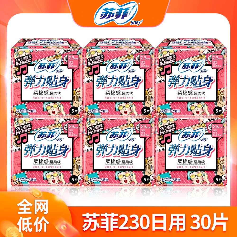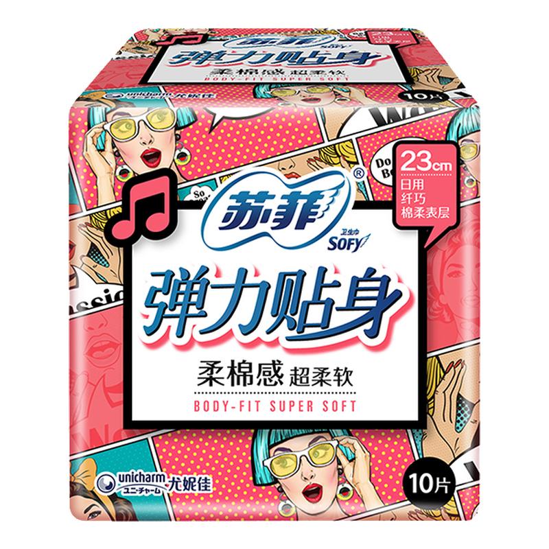 sofy/苏菲弹力贴身卫生巾日用量大平价吸收快透气不闷姨妈巾