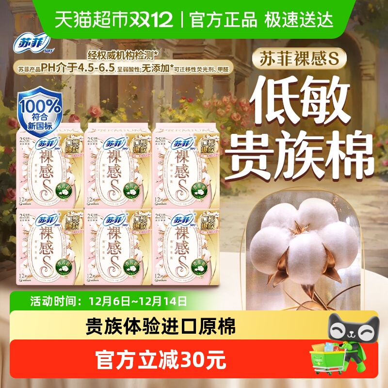 sofy/苏菲裸感S卫生巾敏感肌超薄日用超熟睡夜用姨妈巾正品