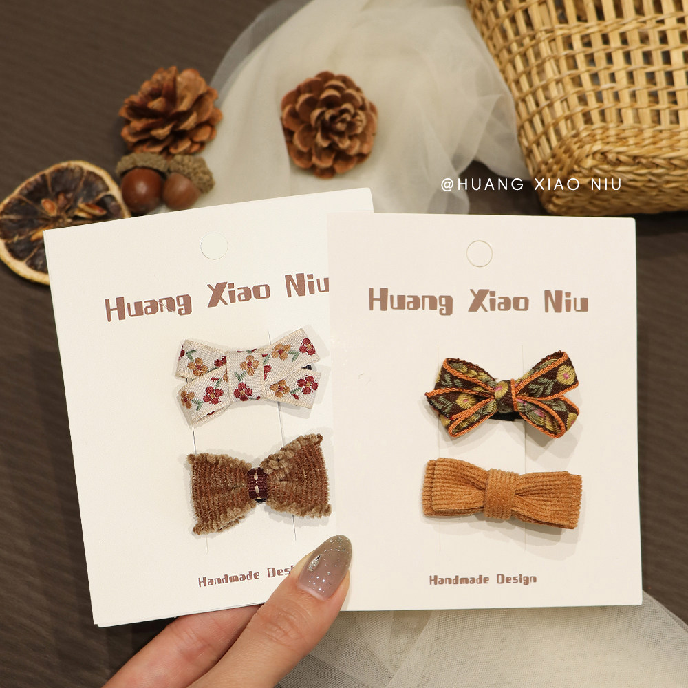 复古刺绣花朵发夹女童可爱小发夹儿童小众侧边bb夹头饰童趣风发饰