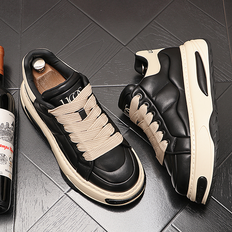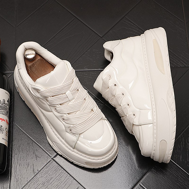 面包鞋男新款厚底时尚休闲鞋亮皮潮男小白鞋韩版潮流板鞋青年鞋子