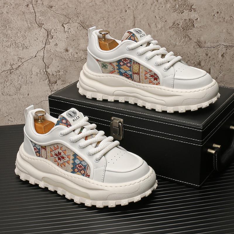 厚底男鞋子2024新品增高休闲鞋韩版百搭潮男小白鞋系带时尚松糕鞋