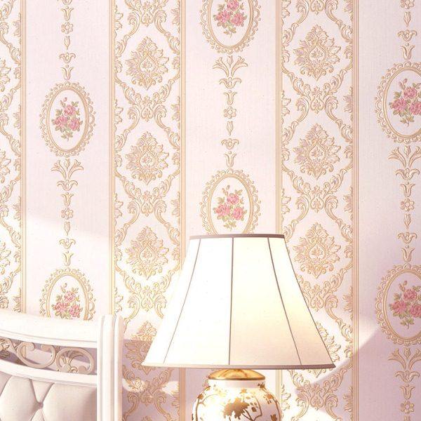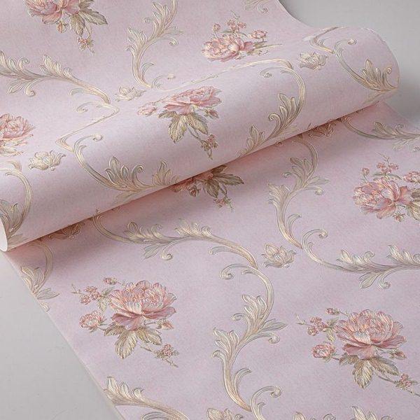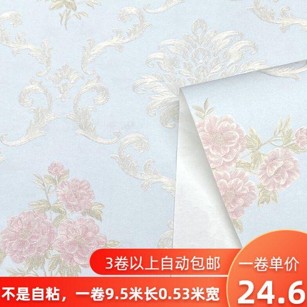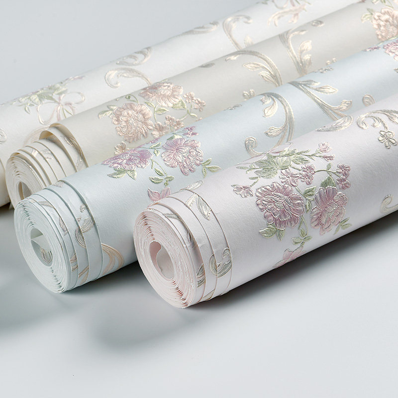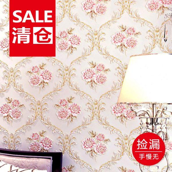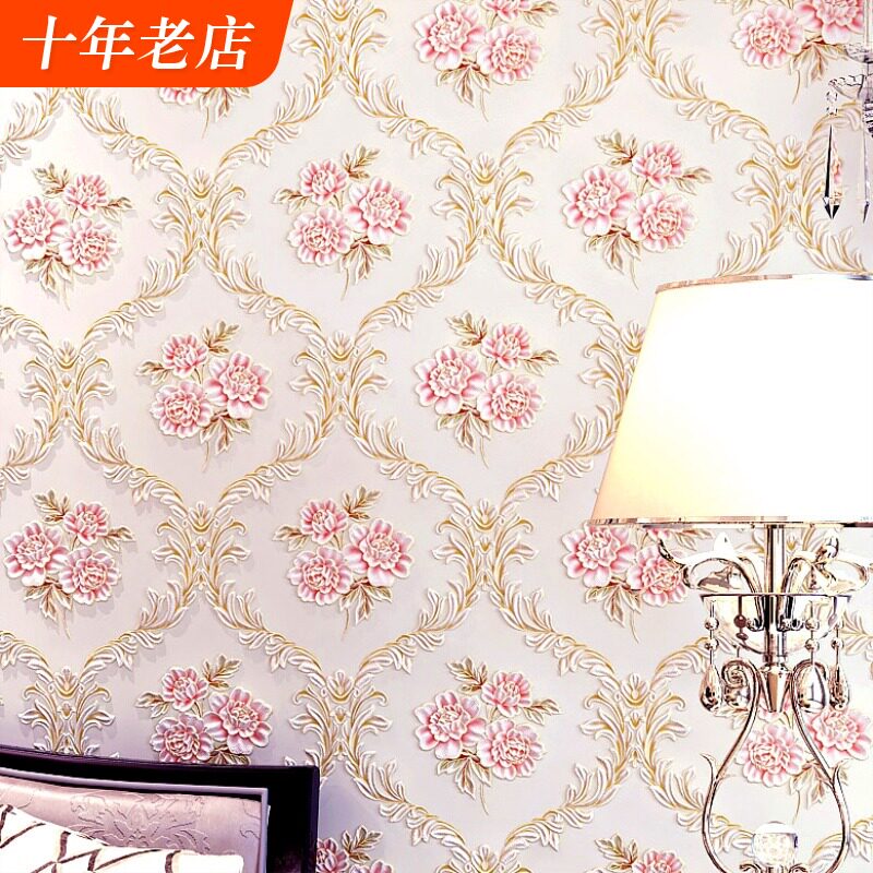 3d田园欧式花墙纸非自粘家用卧室房间立体浮雕无纺布粉色室内壁纸