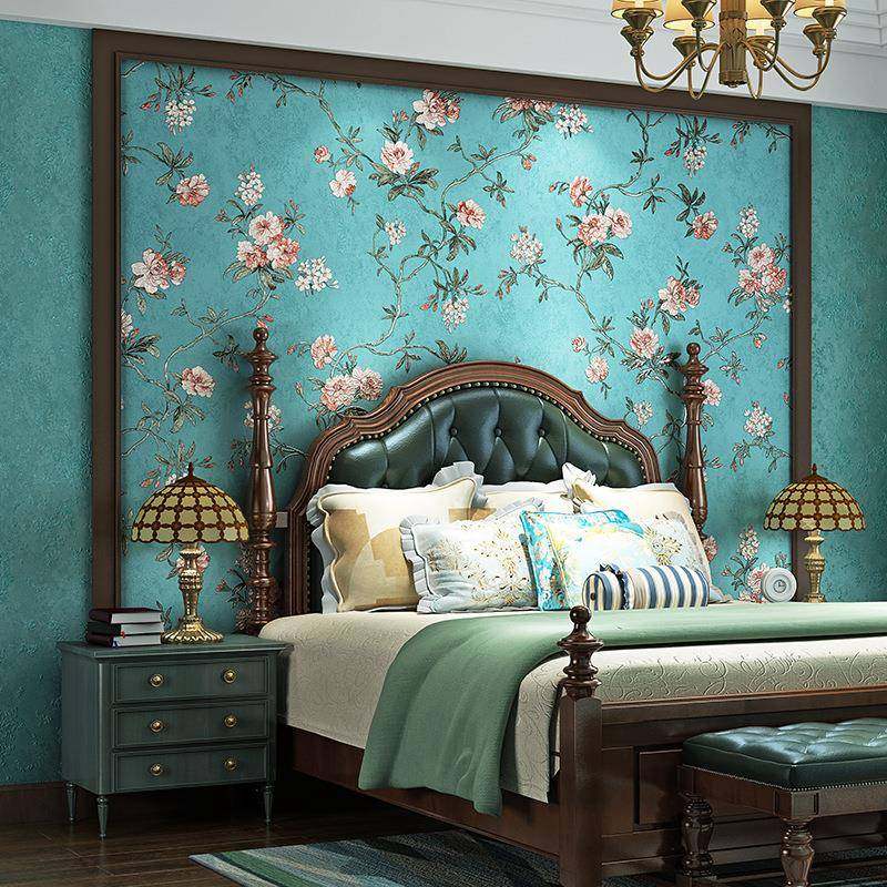美田园无纺布式壁纸小碎花头复风格卧室116客厅主卧床电视背景古