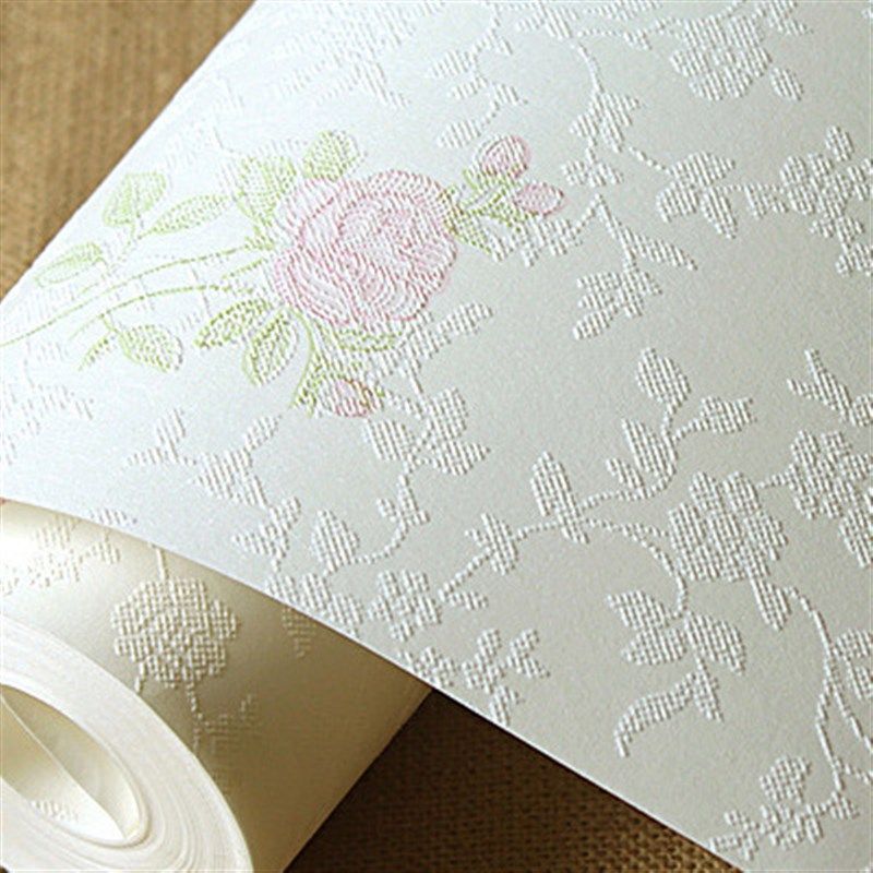 非自粘无纺布刷胶墙纸3D立体浮雕欧式田园客厅卧室温馨家用壁纸