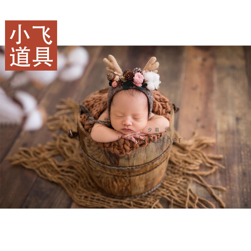 纯手工翻新老木桶宝宝拍照婴儿拍摄辅助筐小飞新生儿摄影道具容器