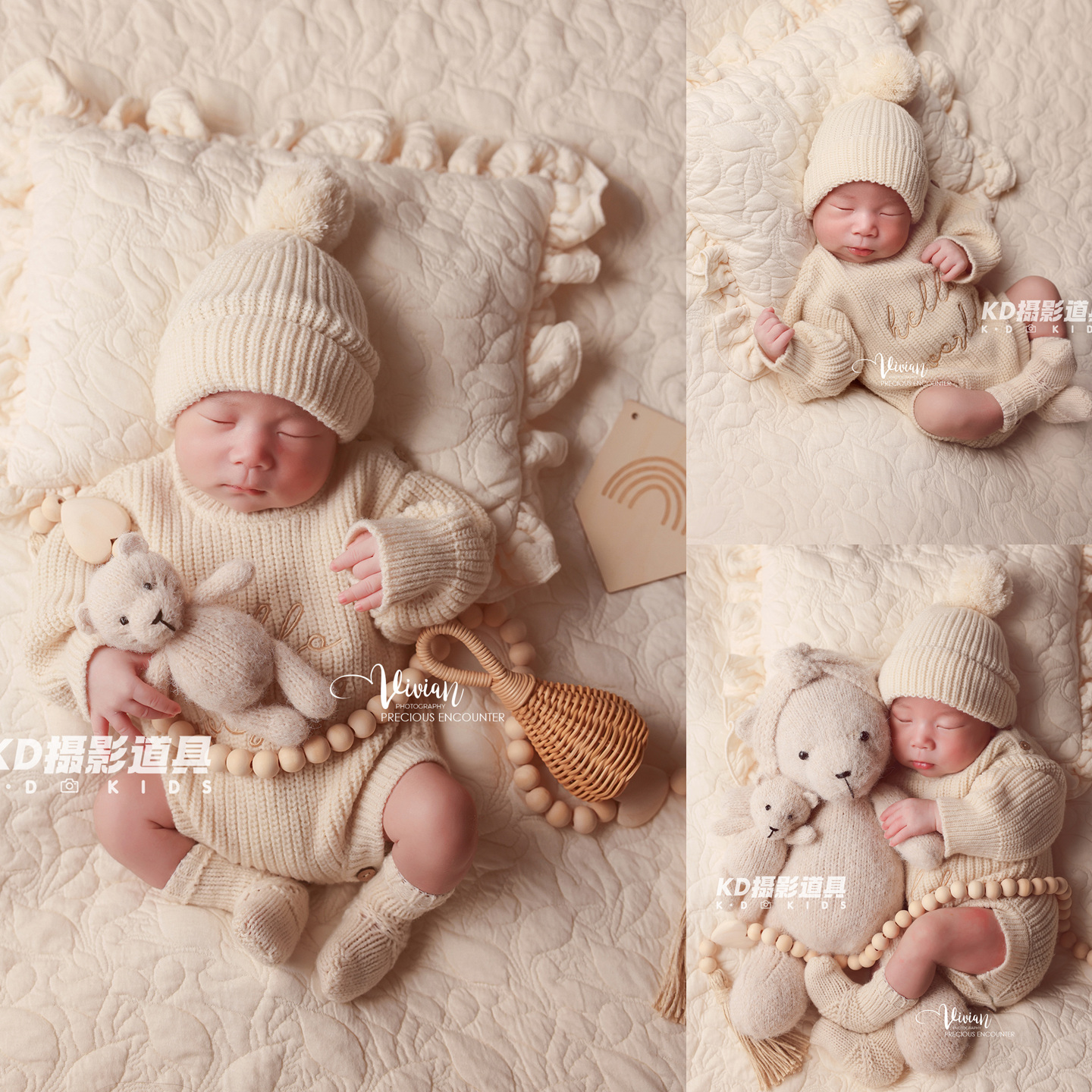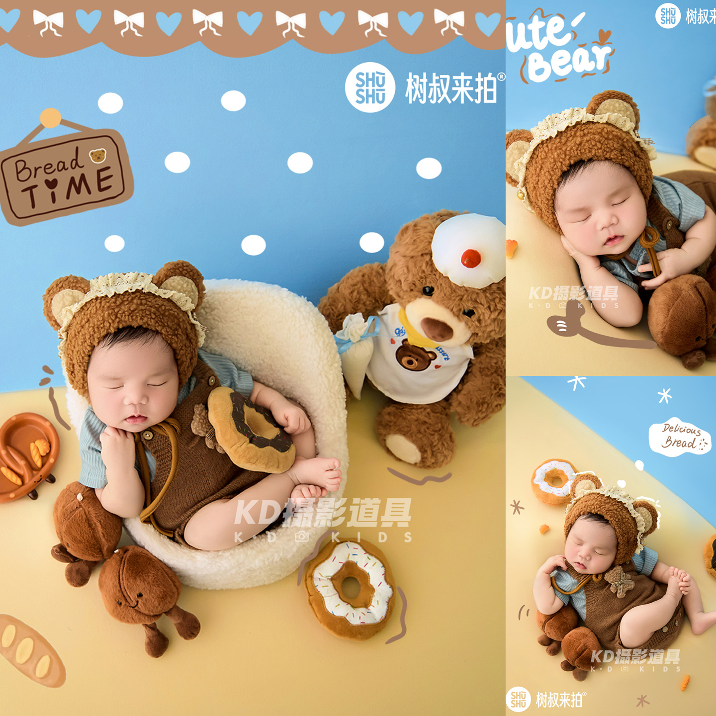 新生儿摄影道具影楼拍照主题2025年会KD月子照宝宝婴儿照相小熊衣