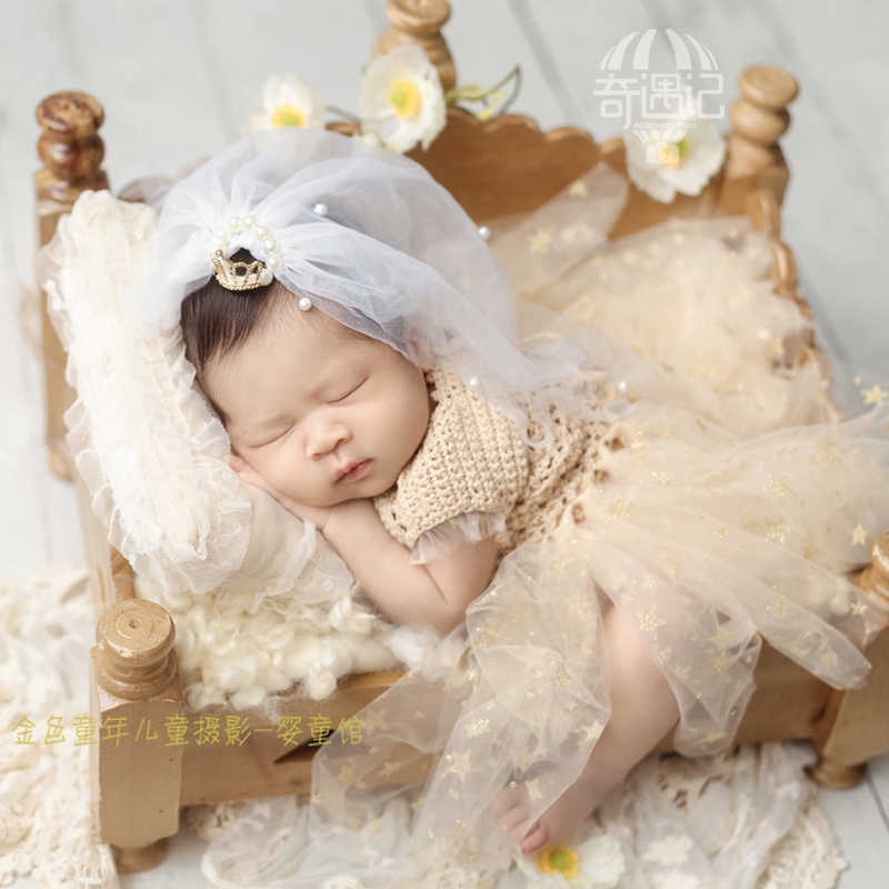 新生儿摄影道具蕾丝衣服满月百天照周岁照法式摄影道具场景在家拍