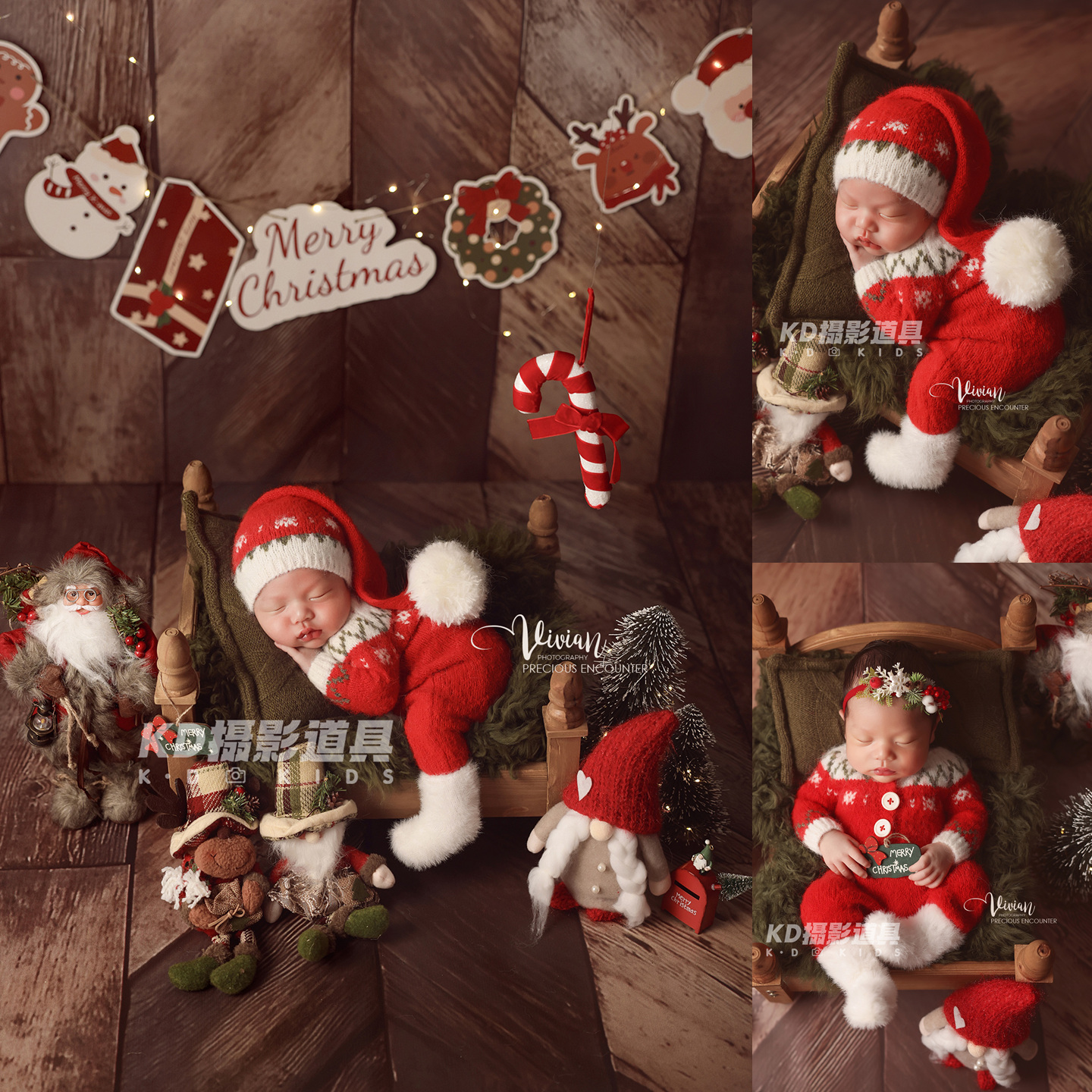 新生儿摄影道具KD新款影楼拍照主题圣诞红色毛线喜庆过年照相衣服
