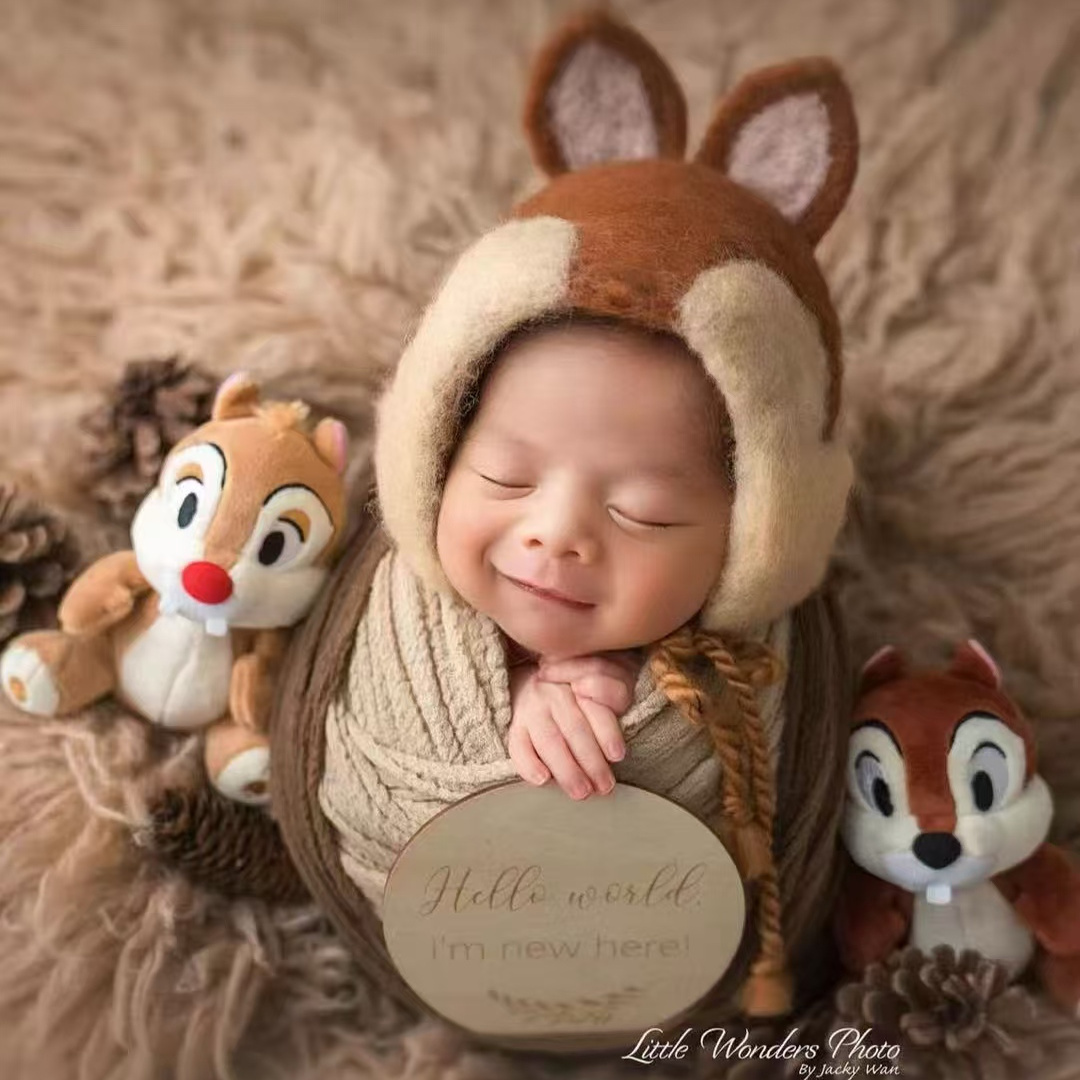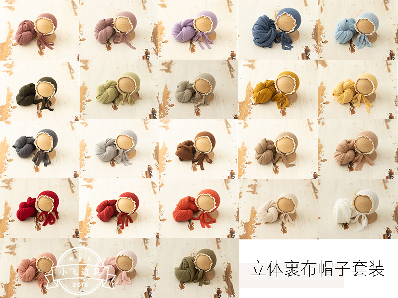 小飞新生儿摄影道具影楼拍照主题月子照初生宝宝婴儿照相裹布帽子