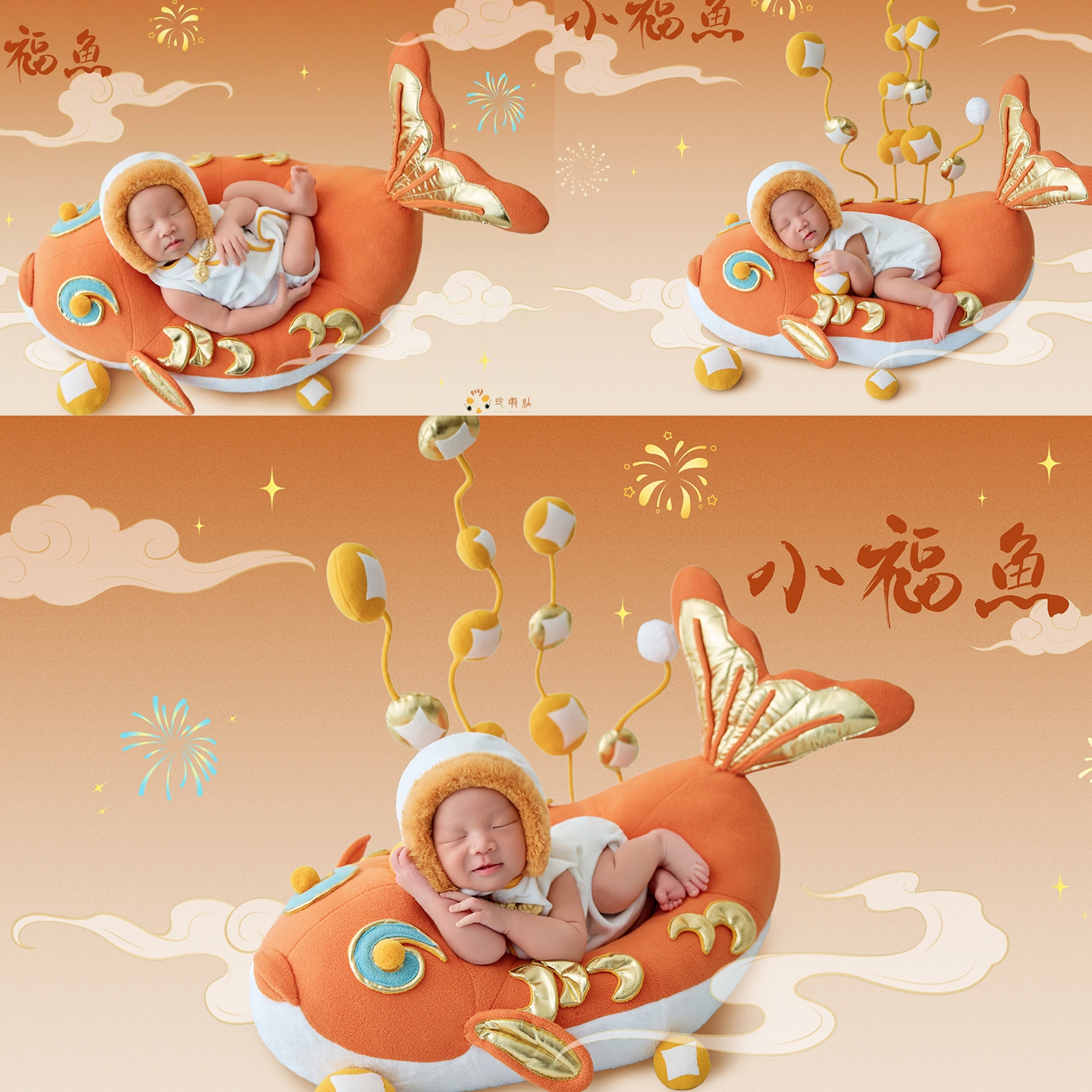 粉色小财神新生儿摄影道具影楼拍照主题2025年KD年会新款月子照衣