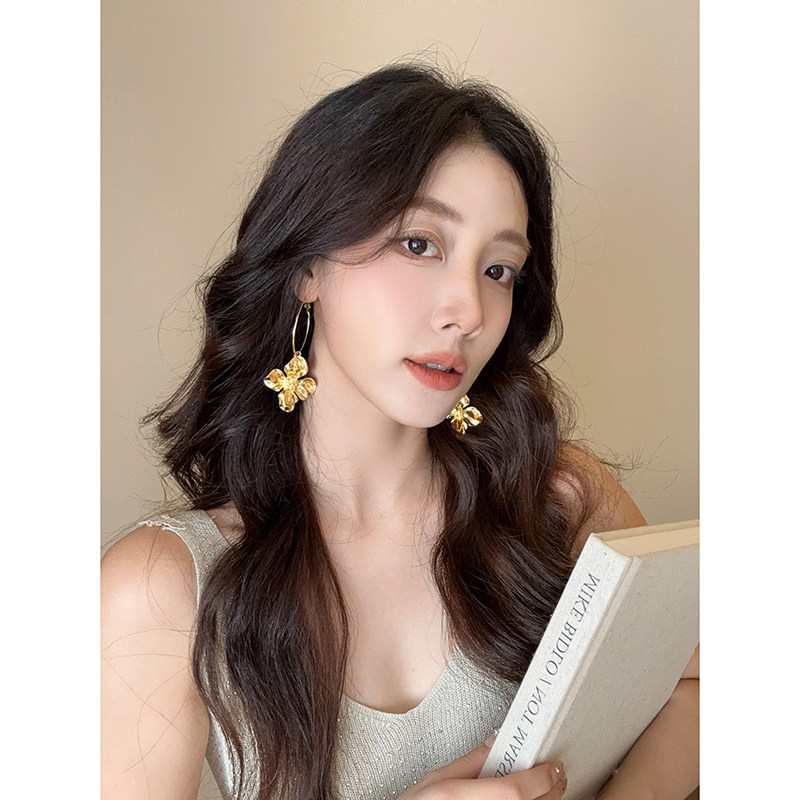 美貌出圈!金色花朵大耳圈耳环女时尚高级感金属耳钉复古夸张耳饰