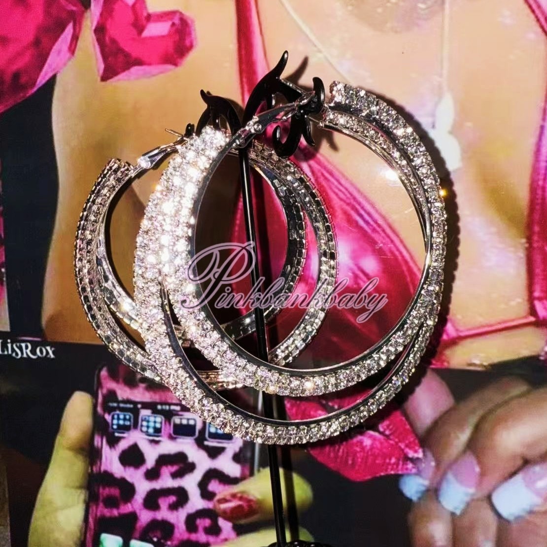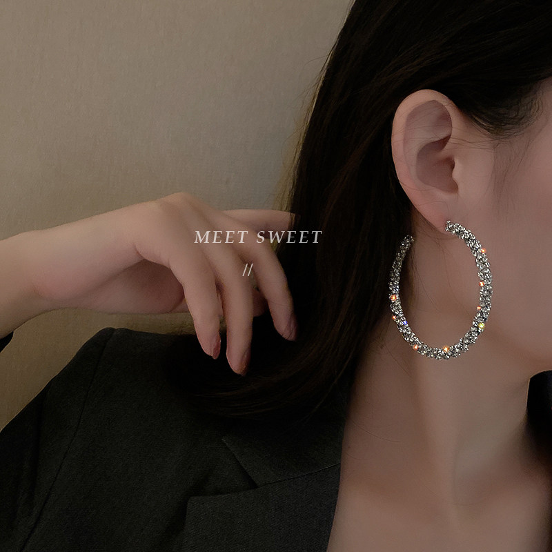 欧美风街拍走秀镶钻大耳圈耳环女网红个性夸张耳坠韩国时尚耳饰品
