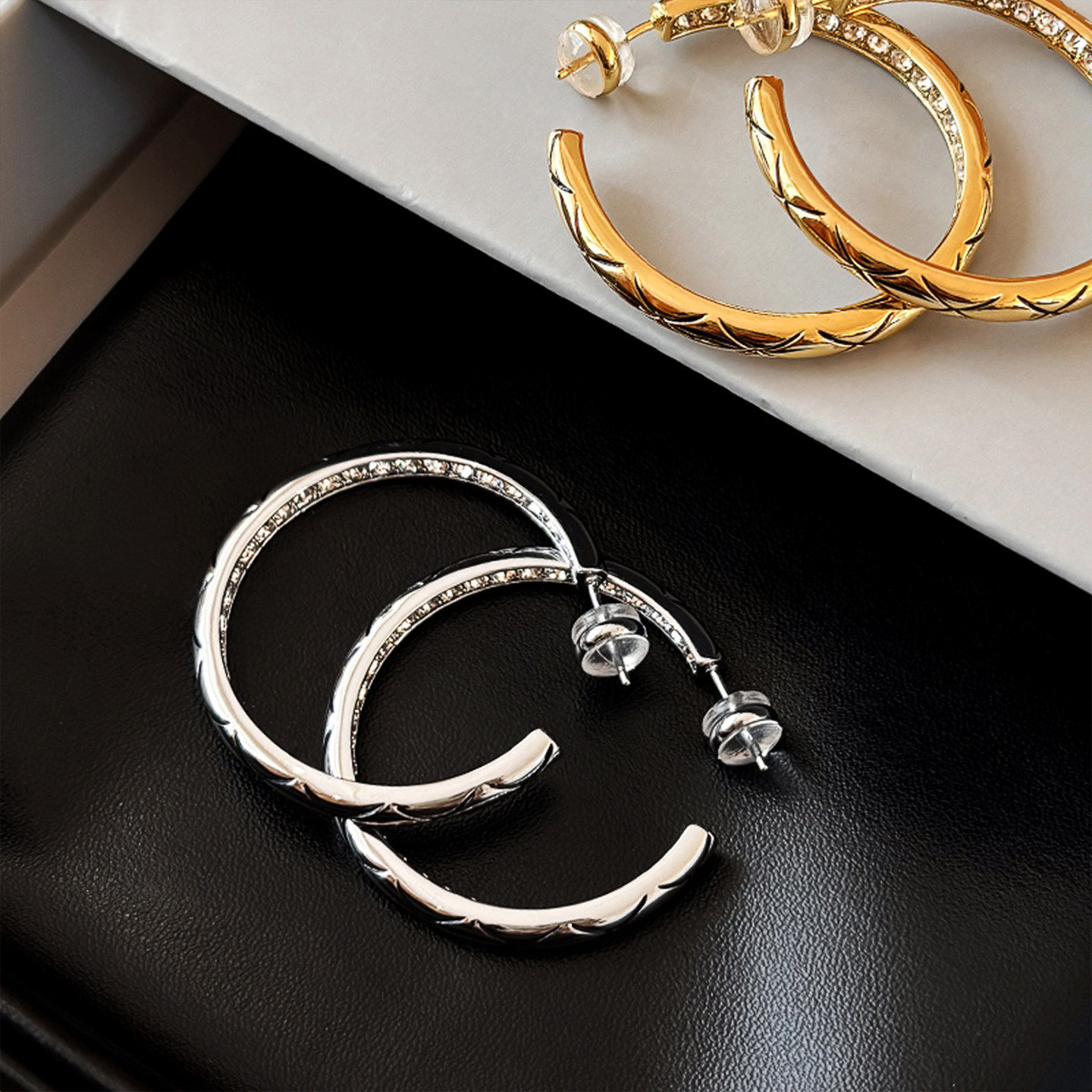 999纯银夸张小香风菱格大耳圈耳环女轻奢高级感耳钉圆圈独特耳饰
