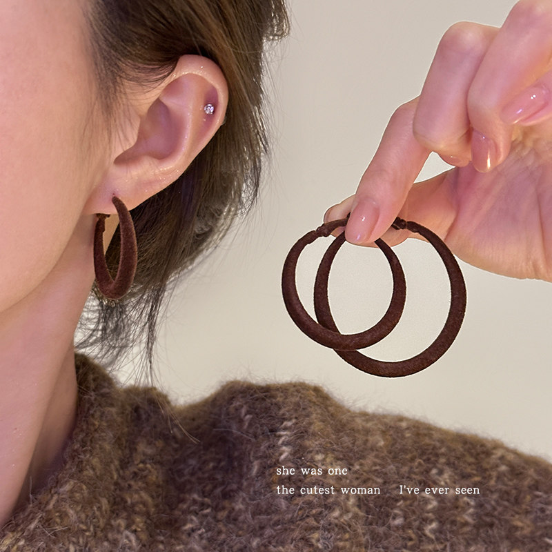 港风丝绒大耳圈耳环2025新款爆款高级感秋冬耳饰女显脸小耳钉耳坠