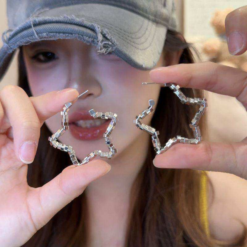 碎银五角星星大耳圈耳环2025新款轻奢高级感耳钉气质百搭辣妹耳饰