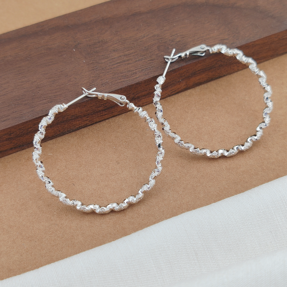YOUJUclub-双层细圆圈~银色金属夸张高级感大耳圈耳环蚊香盘耳夹